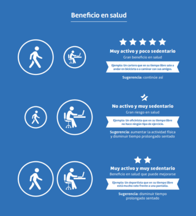 Según las recomendaciones actuales de la Organización Mundial de la Salud (OMS) en los adultos se considera que se es activo físicamente si se acumulan de 150 a 300 minutos semanales de AF moderada, fundamentalmente del tipo aeróbico y se realizan al menos 2 veces a la semana actividades de tonificación y fortalecimiento muscular moderado.