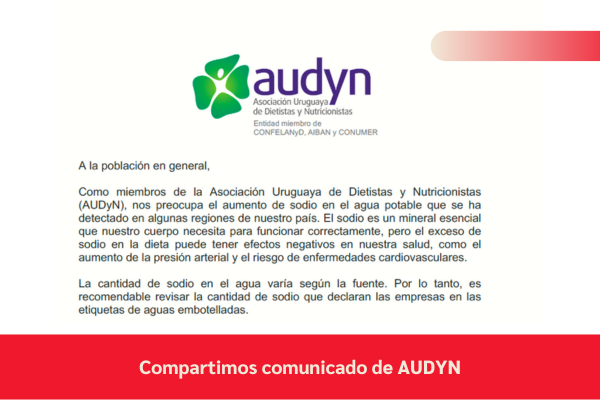 Esto quiere decir que debemos tener en cuenta el sodio del agua de OSE como una ingesta más, en el consumo diario.