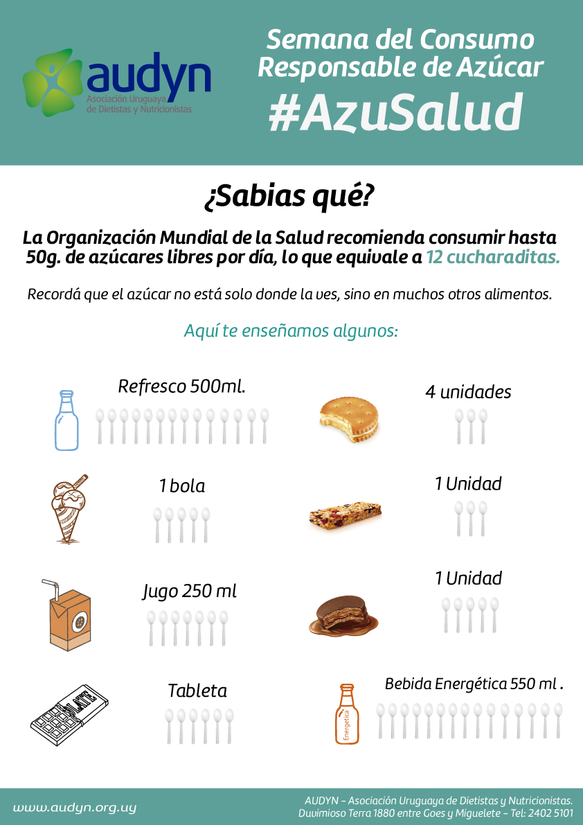 La Semana del 22 al 28 de octubre es la Semana del Consumo Responsable de Azucar #AzuSalud impulsada por AUDYN. Un consumo habitual de azúcar mayor a las recomendaciones causa aumento de peso, y se relaciona con la aparición de Diabetes tipo 2, resistencia a la insulina y caries. Gran parte del azúcar que consumimos está en alimentos y productos que…