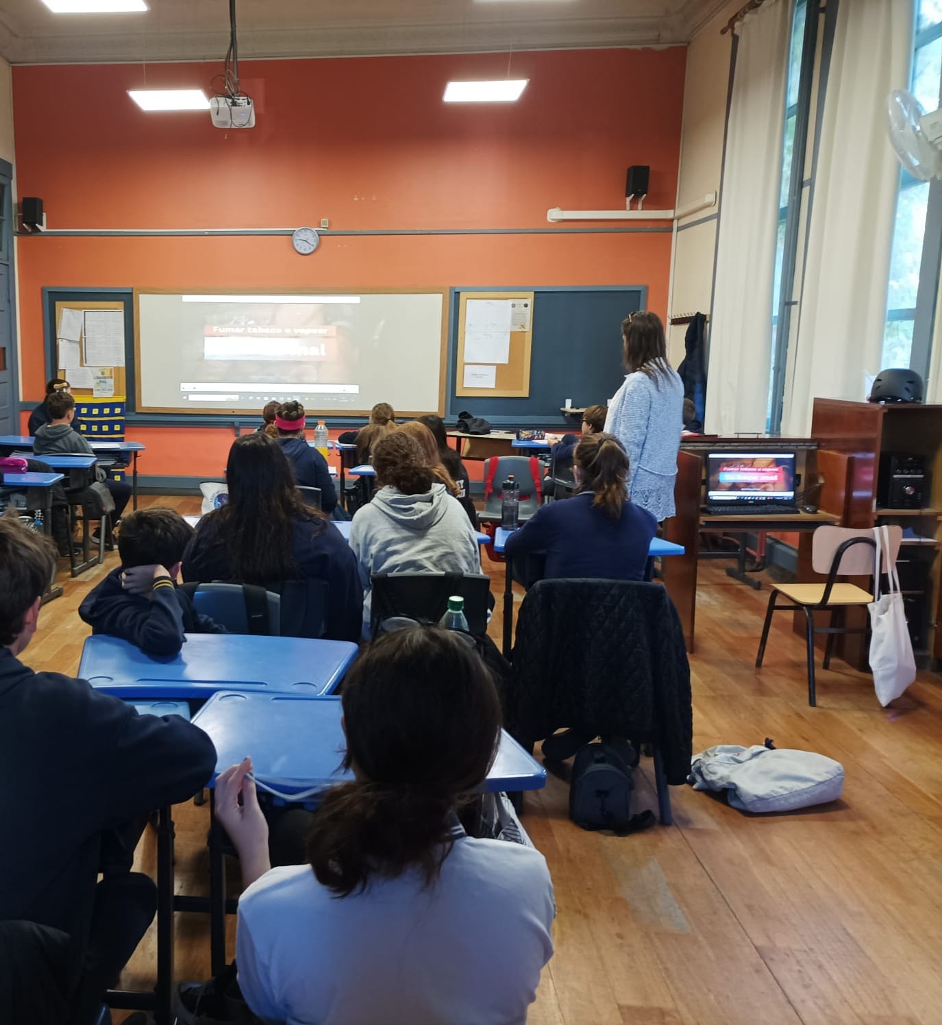 Los talleres se iniciaron trabajando en el marco de la campaña QueNadieSeLoFume, una campaña de prevención de consumo de tabaco y/o nicotina. Partiendo de las creencias y conocimientos de los adolescentes previos al taller, se abordó el tema del impacto del consumo de nicotina para la salud, cuáles son sus efectos y riesgos potenciales. Se trabajaron también otros hábitos relacionados con la salud como la actividad física y el movimiento, sus beneficios, efectos protectores y el bienestar que genera. Los talleres han sido interactivos, con participación activa de los adolescentes, ofreciendo un espacio que posibilite el intercambio.
