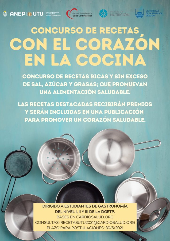 La Comisión Honoraria para la Salud Cardiovascular y la Dirección General del Consejo de Educación Técnico Profesional lanzamos el primer concurso “Con el Corazón en la Cocina”, dirigido a estudiantes de Gastronomía en la UTU, que premia recetas ricas que promuevan una alimentación saludable.