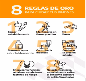 Dada la naturaleza silenciosa de la ERC, instamos a la importancia de los controles y la incorporación de las acciones descriptas como 8 reglas para el cuidado de la salud renal.