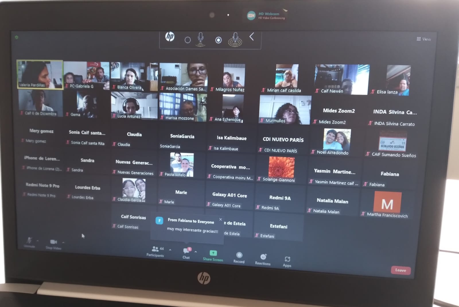 Más de 105 integrantes de los equipos de cocina de los CAIF de Canelones, Lavalleja y Montevideo se anotaron. Esto determinó la división en dos grupos, y la realización de dos encuentros. El primero fue el viernes 1 de diciembre por la plataforma zoom. La asistencia fue de 35 personas, más el equipo técnico de INDA.