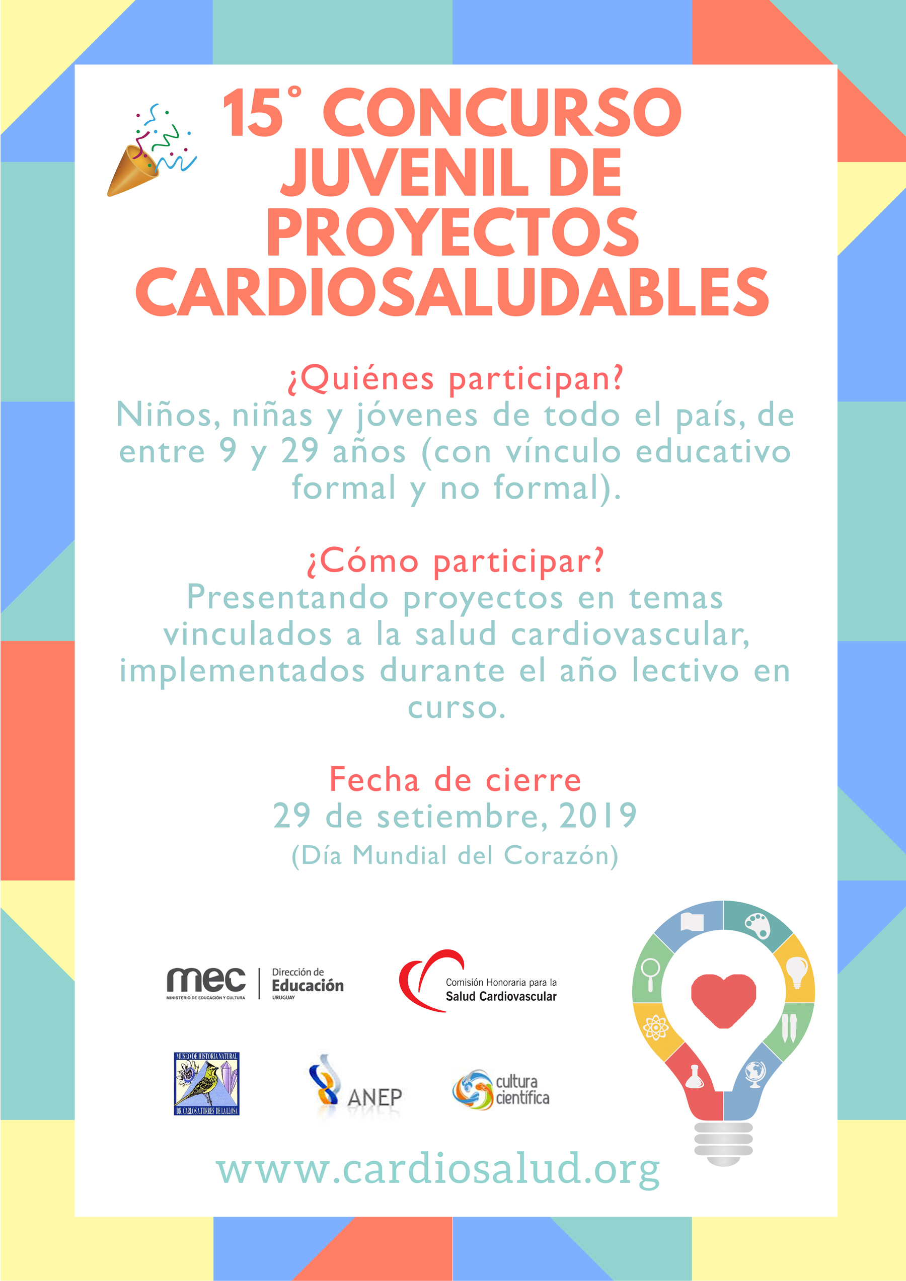 La Comisión Honoraria para la Salud Cardiovascular, la Dirección de Educación del Ministerio de Educación y Cultura y ANEP/CODICEN, convocan para este 2019 a presentar proyectos en el marco del “XV Concurso Juvenil de Proyectos Cardiosaludables”. El concurso, que en esta edición cumple sus quince años, pretende concientizar sobre la importancia de prevenir las enfermedades cardiovasculares, promoviendo en niños y…