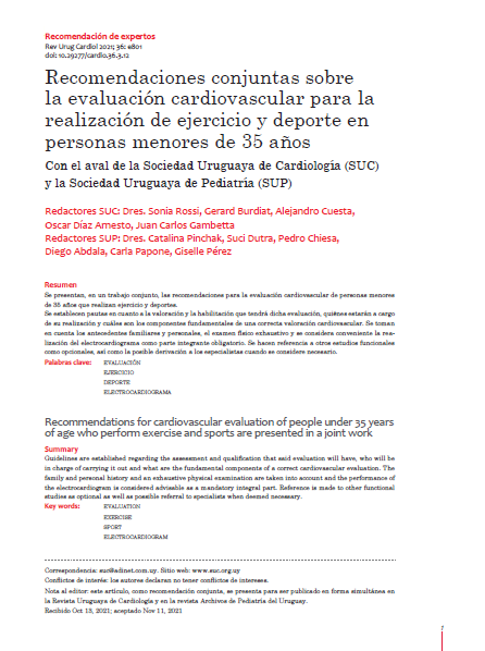 Compartimos las recomendaciones conjuntas sobre la evaluación cardiovascular para la realización de ejercicio y deporte en personas menores de 35 años de la Sociedad Uruguaya de Cardiología y la Sociedad Uruguaya de Pediatría.