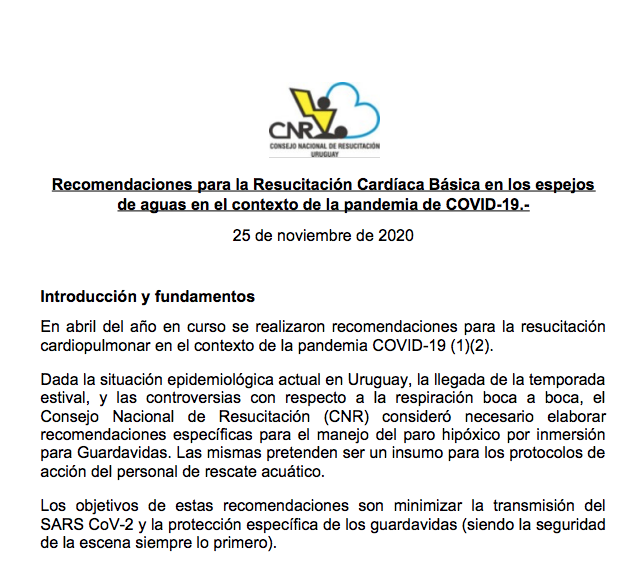 Compartimos recomendaciones del Consejo Nacional de Resucitación, en relación al paro hipóxico por inmersión, en el contexto de la pandemia.