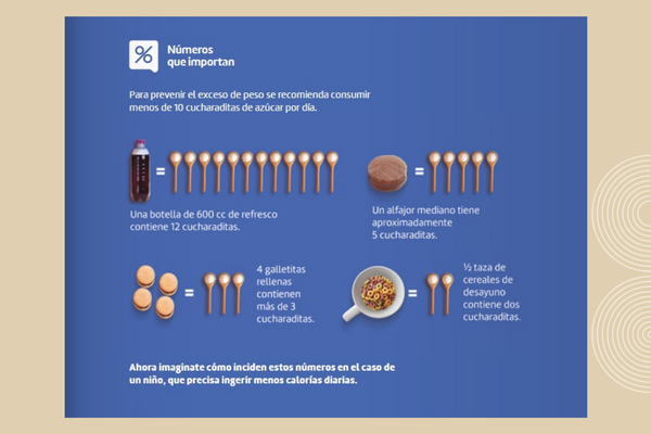 El mensaje es para los adultos, que sin querer incluyen azúcar a través de productos procesados como jugos o galletitas, pero también para reflexionar sobre el problema que esto puede ocasionar en los niños.