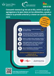 En el marco de la Semana de Sensibilización sobre el Consumo de Sal, que se celebra del 12 al 18 de mayo, la Comisión Honoraria para la Salud Cardiovascular promueve la campaña “5 pasos para no pasar los 5 gramos de sal al día”, con el objetivo de informar, educar y generar conciencia sobre los efectos del sodio en la salud.