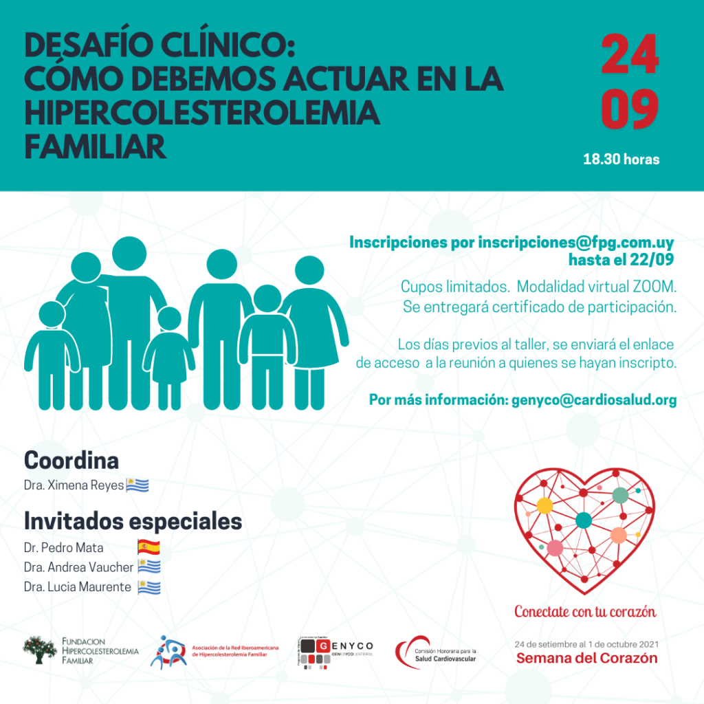 El viernes 24 de setiembre, en el marco del Día Internacional de la Hipercolesterolemia Familiar y la Semana del Corazón, desde la Comisión Honoraria para la Salud Cardiovascular realizaremos el taller «Desafío clínico: cómo debemos actuar en la hipercolesterolemia familiar».