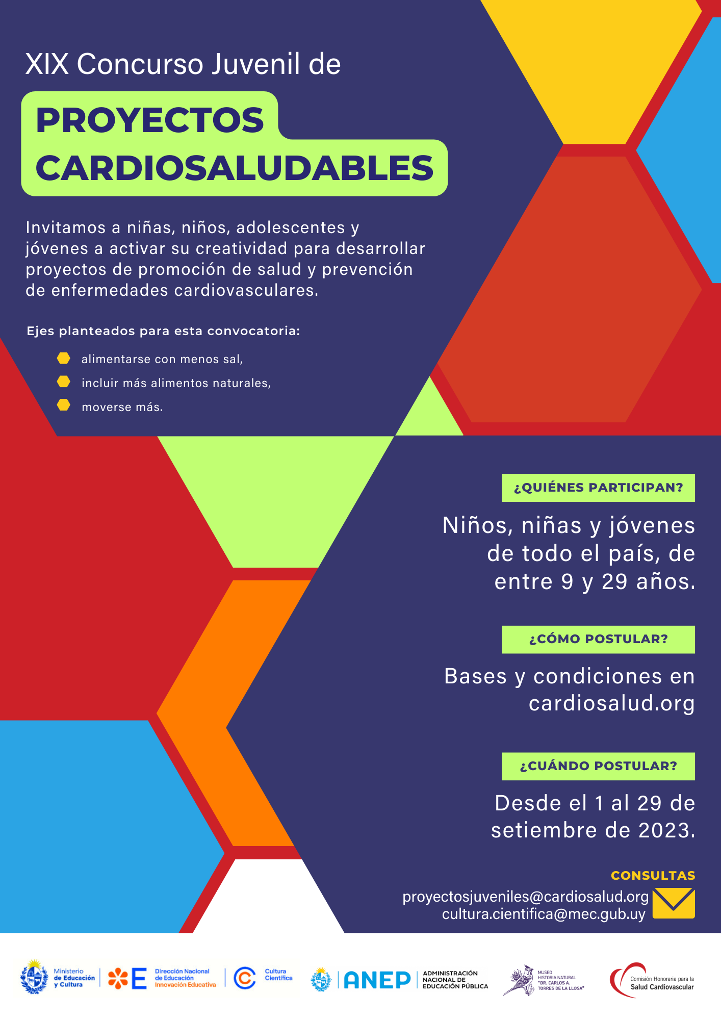 La Comisión Honoraria para la Salud Cardiovascular, junto a Cultura Científica de la Dirección de Educación del Ministerio de Educación y Cultura y la Administración Nacional de Educación Pública, lanzan hoy la 19 edición del Concurso Juvenil de Proyectos Cardiosaludables.